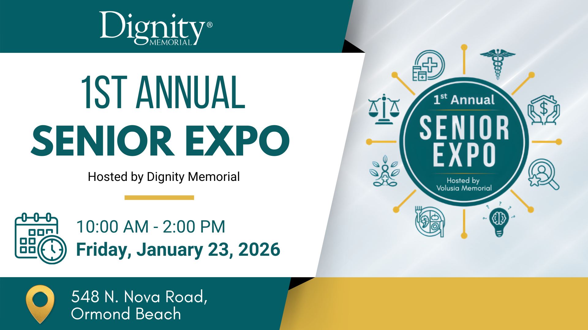 The 1st Annual Dignity Memorial Senior Expo will be held Friday, Jan. 23, 2026, from 10 a.m. to 2 p.m. at Volusia Memorial Funeral Home, 548 N. Nova Road, Ormond Beach. The event is free and open to the community.