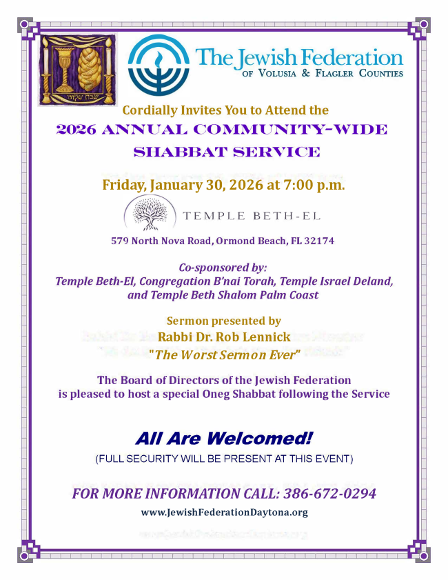 2026 Annual Community-wide Shabbat Service Set for January 30