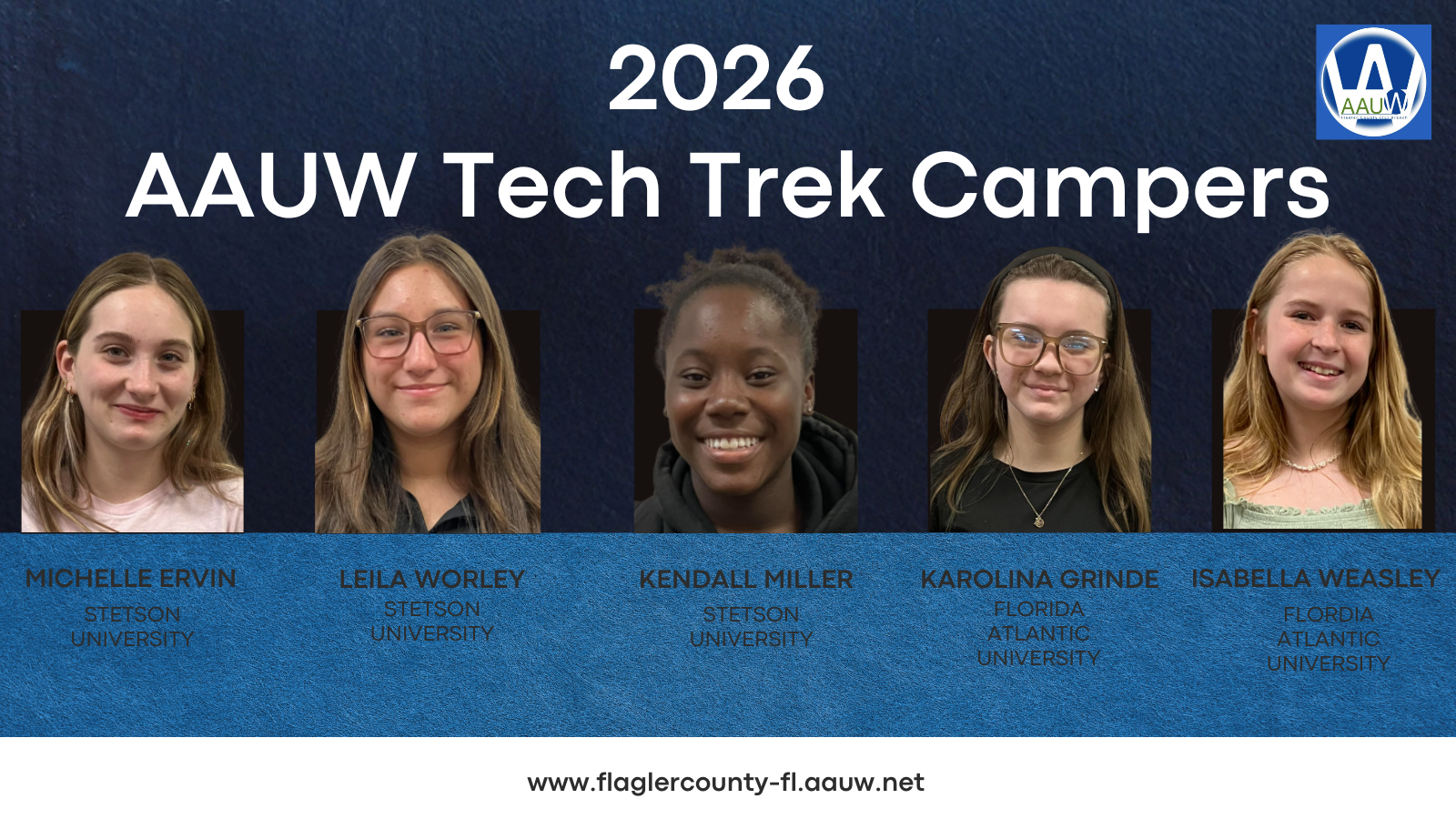 The American Association of University Women (AAUW) Flagler County Branch wishes to congratulate the five Flagler County seventh grade girls who have been selected to attend AAUW Tech Trek camp in June 2026.