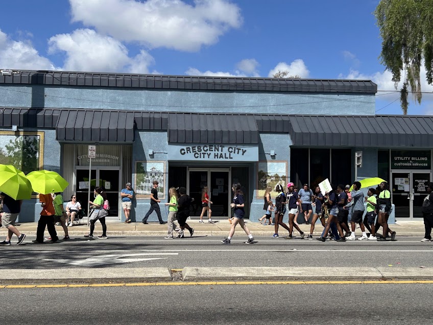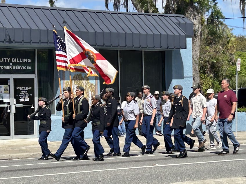 Adding a sense of pride and reverence, the Crescent City High School JROTC presented the colors followed by the Crescent City Marching Band, while a powerful Easter-themed display reminded spectators of the season’s deeper meaning. One float depicted Jesus on the crucifix and celebrated the message of resurrection, offering a moving tribute that resonated with the those in attendance.