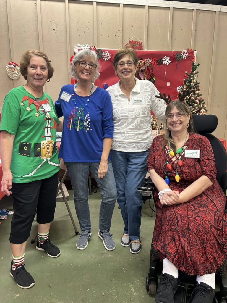 Volunteer Jan Sutton assumes the role of head elf for The Giving Store, supported by Flagler Volunteer Services’ Judy Bucek and many others.
