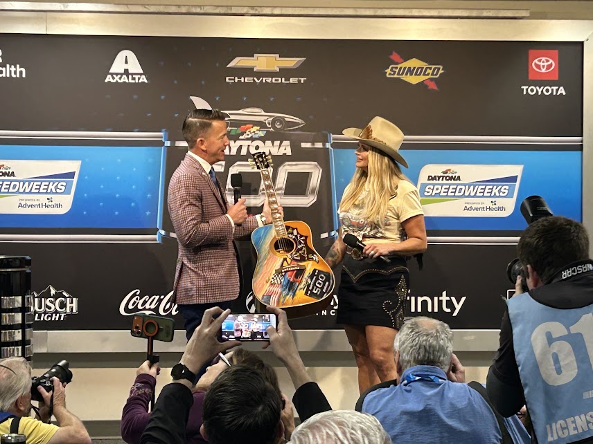 DAYTONA BEACH, Fla. – Ahead of the 68th running of the Daytona 500 at Daytona International Speedway, country star Miranda Lambert was presented with a one-of-a-kind custom guitar by Daytona International Speedway Track President Frank Kelleher on behalf of the France family