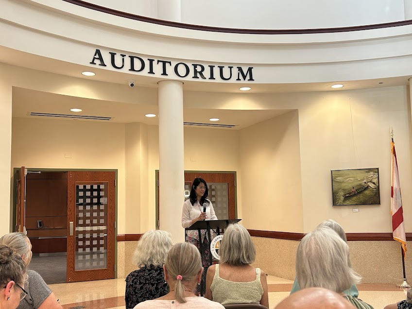 ST. JOHNS COUNTY, Fla. – The new Art in Public Spaces exhibit drew a large and enthusiastic crowd Wednesday, April 15, as guests gathered at the St. Johns County Government Administration Building for the opening reception of artist Koo Hon’s “Whispers of the Earth.”