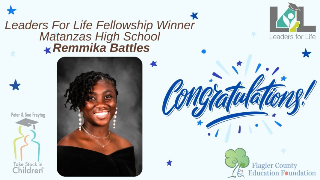 Flagler County, FL — Take Stock in Children of Flagler County is proud to announce that Matanzas High School senior Remy Battles has been named a 2025 Leaders for Life Fellow, one of the most prestigious honors awarded through the Take Stock in Children program.