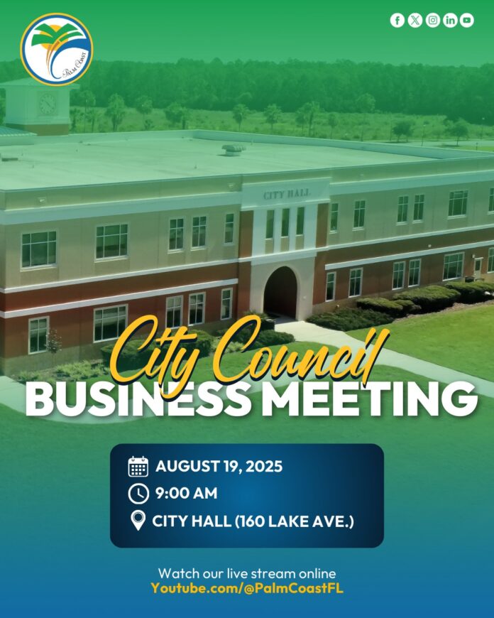 Palm Coast—The Palm Coast City Council meets regularly to discuss and vote on official City business. These meetings are open to the public, and Palm Coast residents are strongly encouraged to attend. An increase in public engagement helps to build a stronger sense of community, increase valuable discussions, and decrease division.