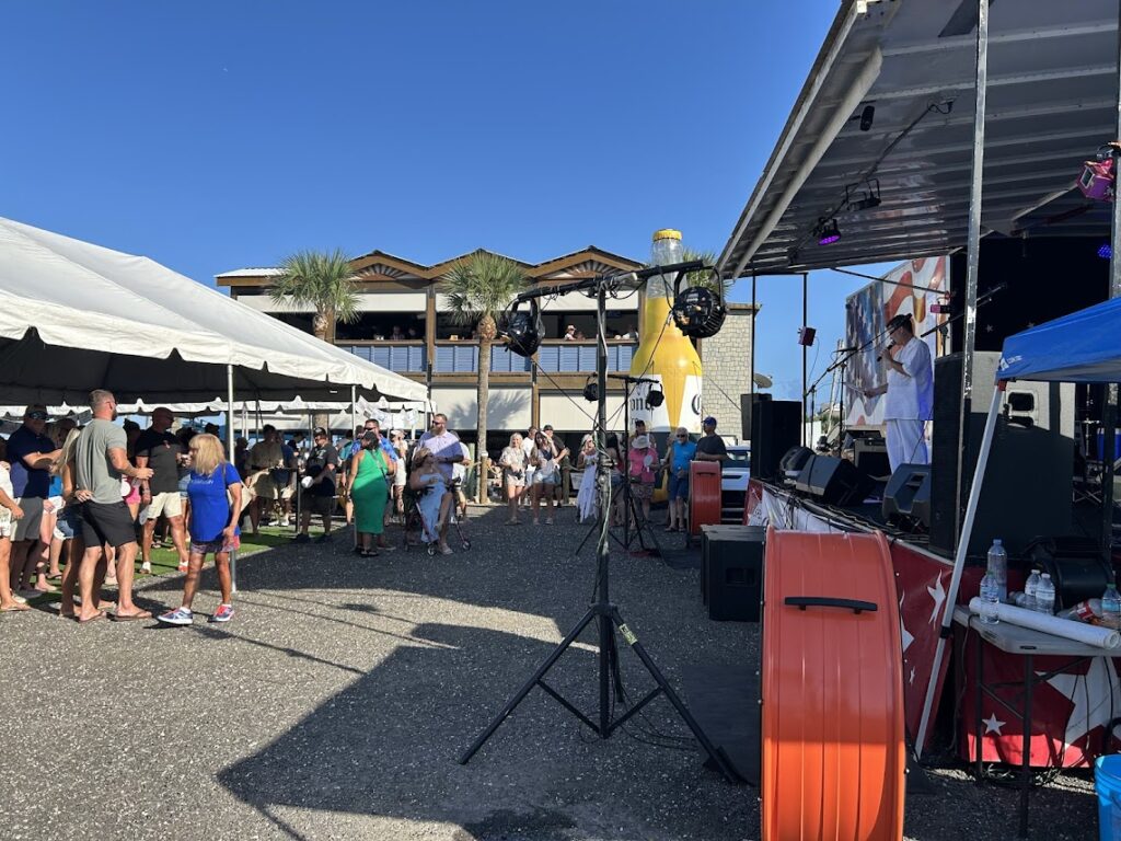 FLAGLER BEACH, Fla. – Hot weather made the drinks colder, the shade cooler, and drove attendees to the restaurant for good eats and to the big tent to place their bids on the silent auction items Saturday, July 19 as local nonprofit Flagler Strong hosted a benefit for the Flagler Beach Police Department.