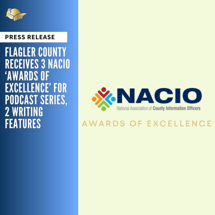 July 15, 2025 – Flagler County is the recipient of three National Association of County Information Officers (NACIO) “Awards of Excellence,” in the category Audiovisual Podcast Series for the county’s new podcast called Flagler in Focus and two writing features. NACIO, which is an active affiliate of the National Association of Counties (NACo), made the presentations July 14 during its annual conference in Philadelphia that the county attended virtually.