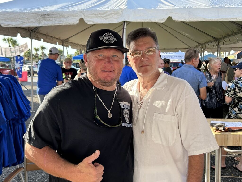 Flagler Beach Police Chief Matt Doughney and Tortugas Florida Kitchen & Bar co-owner Scott Fox. (Flagler News Weekly)
