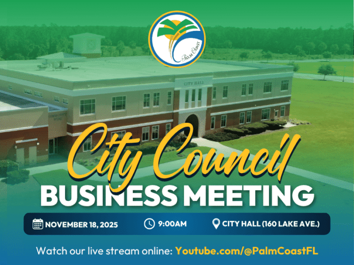 Palm Coast—The Palm Coast City Council meets regularly to discuss and vote on official City business. These meetings are open to the public, and Palm Coast residents are strongly encouraged to attend. An increase in public engagement helps to build a stronger sense of community, increase valuable discussions, and decrease division.