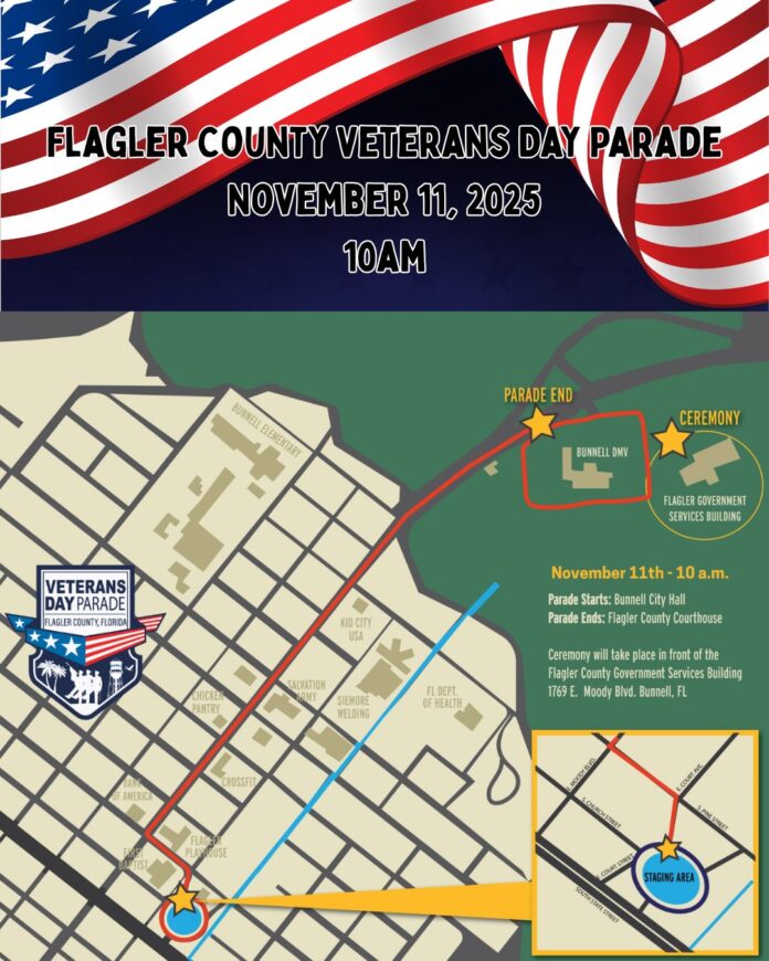 Bunnell, FL – November 10, 2025 – The City of Bunnell, Flagler County, City of Palm Coast, City of Flagler Beach, Town of Marineland, and Town of Beverly Beach are proud to announce the highly-anticipated 3rd Annual Veterans Day Parade, set to take place on Tuesday, November 11, 2025, at 10:00 AM. This patriotic extravaganza brings together communities across Flagler County to honor our brave veterans and express our heartfelt gratitude for their service and sacrifice.