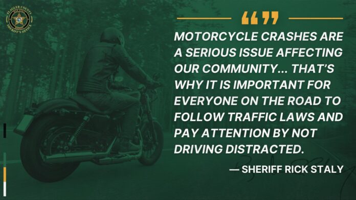 “Motorcycle crashes are a serious issue affecting the safety of our community. Just in the last few weeks, we’ve unfortunately seen multiple fatal motorcycle crashes,” said Sheriff Rick Staly. “And sadly, the blame can go all around. Sometimes the crashes are the motorcyclist’s fault, and sometimes it is another driver who didn’t see the motorcycle. That’s why it is important for everyone on the road to follow traffic laws and pay attention by not driving distracted.”