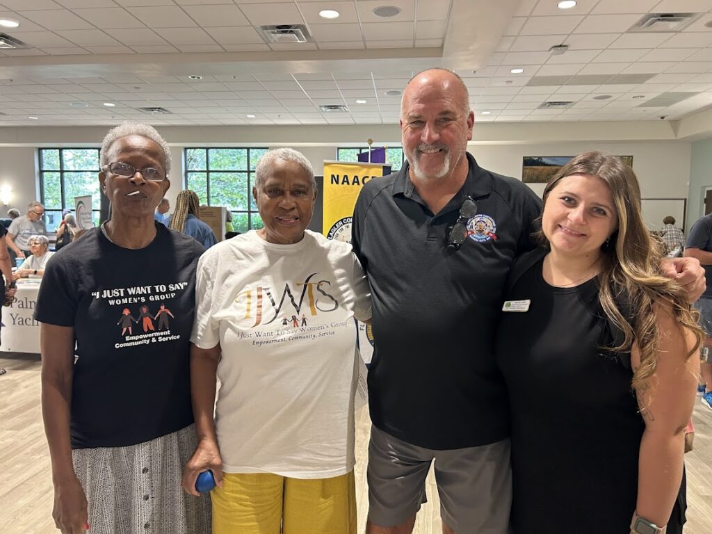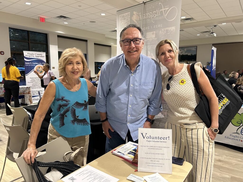 At the Flagler Volunteer Services -table, new residents Victoria and her husband stopped by to learn how they could get involved. Having recently moved to Palm Coast in September, the couple was eager to connect. A flyer about an upcoming Alaska cruise fundraiser caught Victoria’s eye and sparked a conversation. She shared her extensive travel experience—especially to Alaska, where she’s been multiple times—and mused about the possibility of serving as a volunteer tour guide for her new neighbors.