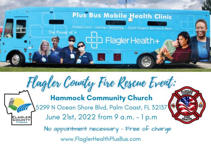 Mark your calendars now for June 21st at the Hammock Community Church. Flagler County Community Paramedics and the Flagler Health + Plus Bus will be hosting a mobile health clinic at 5299 N. Ocean Shore Blvd., Palm Coast, FL 32137 from 9 a.m- 1 p.m. Event is free to attend! Health screenings, diagnostic testing, wound care, cancer screenings, primary care, and much more!