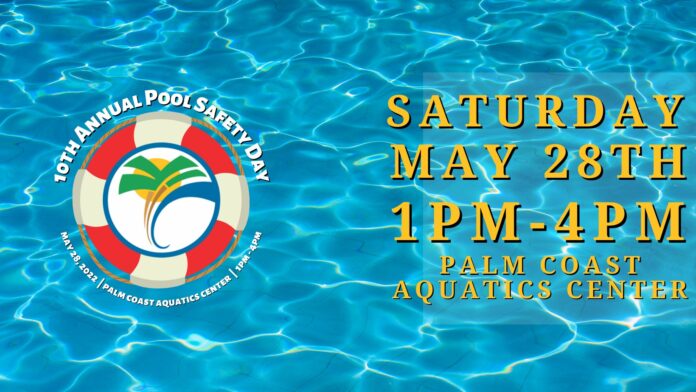 Palm Coast – The City of Palm Coast Parks and Recreation Department in partnership with AdventHealth will host the 10th Annual Pool Safety Day on May 28th from 1:00 p.m. until 4:00 p.m., inside the Palm Coast Aquatics Center located at 339 Parkview Drive in Palm Coast.
