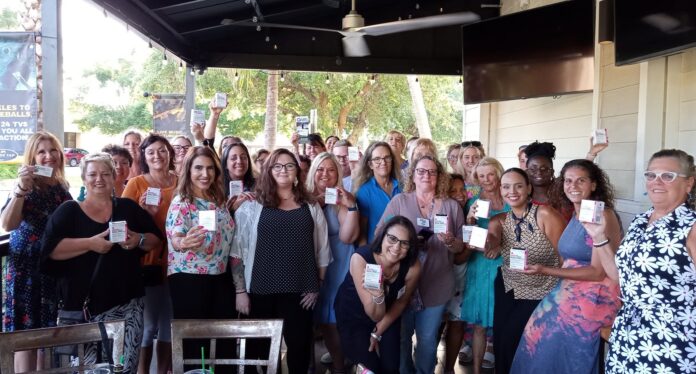 Filling up the porch at The Brass Tap in Palm Coast, professional women from all walks of life listened as speakers Gigi Scott, Sheri Kline and Nina Guiglotto delivered a 3-2-1 professional punch. Birtolo, representing the evening’s featured charity Flagler Open Arms Recovery (Flagler OARS) talked about the dangers of opioid overdose, while urging each mother, sister and daughter in attendance to take a box of NARCAN – which can cost more than $200 at the local pharmacy, with them.