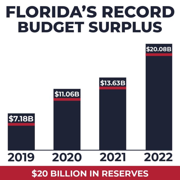 WEST PALM BEACH, Fla. — Today, Governor Ron DeSantis announced that Florida continues to outperform the nation in economic success. Due to Florida’s strong economy, the state has been able to make record investments in education, infrastructure, and other programs while increasing our State Reserves. Florida’s reserves will close out at more than $20 billion for this fiscal year and Florida’s revenues have exceeded pre-pandemic estimates by more than $8 billion. No money from the Federal Government is included in Florida’s record $20 billion reserves.