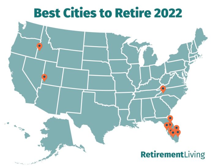 For the full list of the top ten cities, visit https://www.retirementliving.