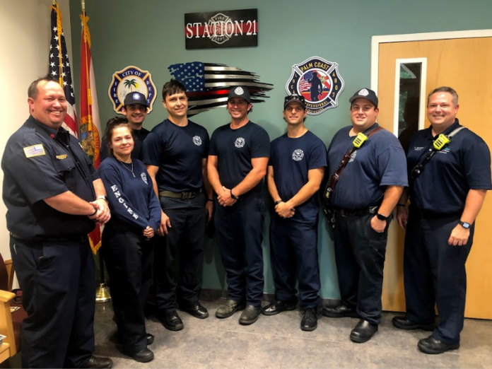 Palm Coast, FL – The Palm Coast Fire Department (PCFD) recently recognized the efforts of firefighters for their actions in helping to save the life of a juvenile who had climbed onto the overpass of Palm Coast Parkway & I-95 bridge on Father’s Day. The teen was having a mental health crisis and was a threat to herself.