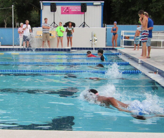 Hosting the inaugural “Duel in the Pool” event on Saturday evening, the friendly competition pitted the Flagler Sheriff’s Police Athletic League swimmers against the Palm Coast Parks and Recreation summer swim team for 10 different competitions over the two hours, at the Belle Terre Swim & Racquet Club.