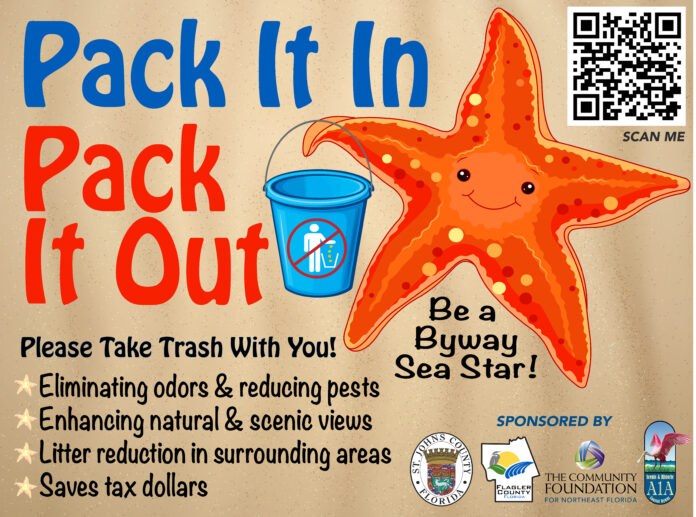 As part of an effort to make a cleaner Earth an everyday activity, the Friends of A1A Scenic & Historic Coastal Byway, Inc. are launching the first pilot location along the nationally designated All-American Road for the “Pack It In, Pack It Out – Be An A1A Scenic Byway Star” campaign. The organization was awarded a grant to help with the efforts by the Delores Barr Weaver Grassroots Grants Endowment at the Community Foundation for Northeast Florida on April 23rd.