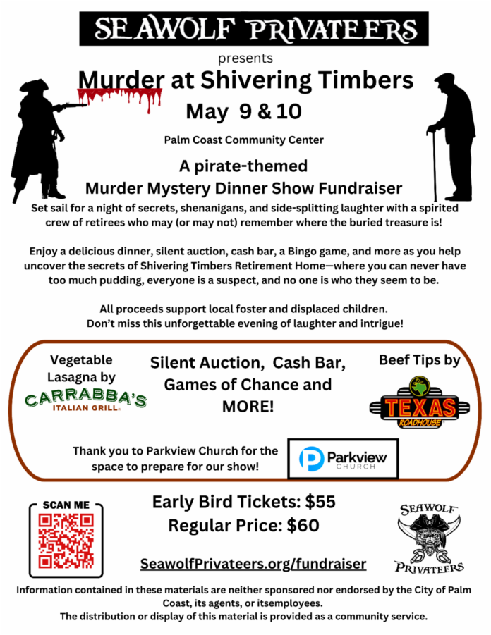Early bird tickets are available starting TODAY, so don’t wait to grab yours. This swashbuckling evening is packed with laughter, suspense, and outrageous fun—but it always sells out, so secure your spot now! Best of all, your ticket supports foster and displaced children in our community, turning a night of mystery into a mission of love.
