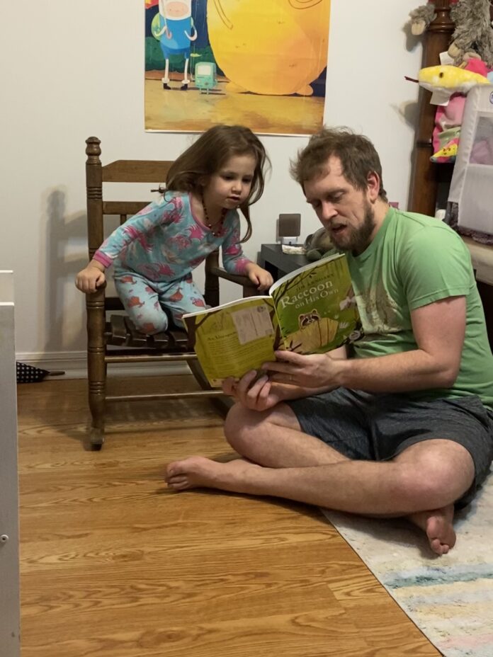 Featured Photo: John Birney, Jr.’s daughter is a recipient of the Dolly Parton Imagination Library books each month. Lennon Paign Birney with her father John Birney, Jr. reading a book she received from the DPIL.