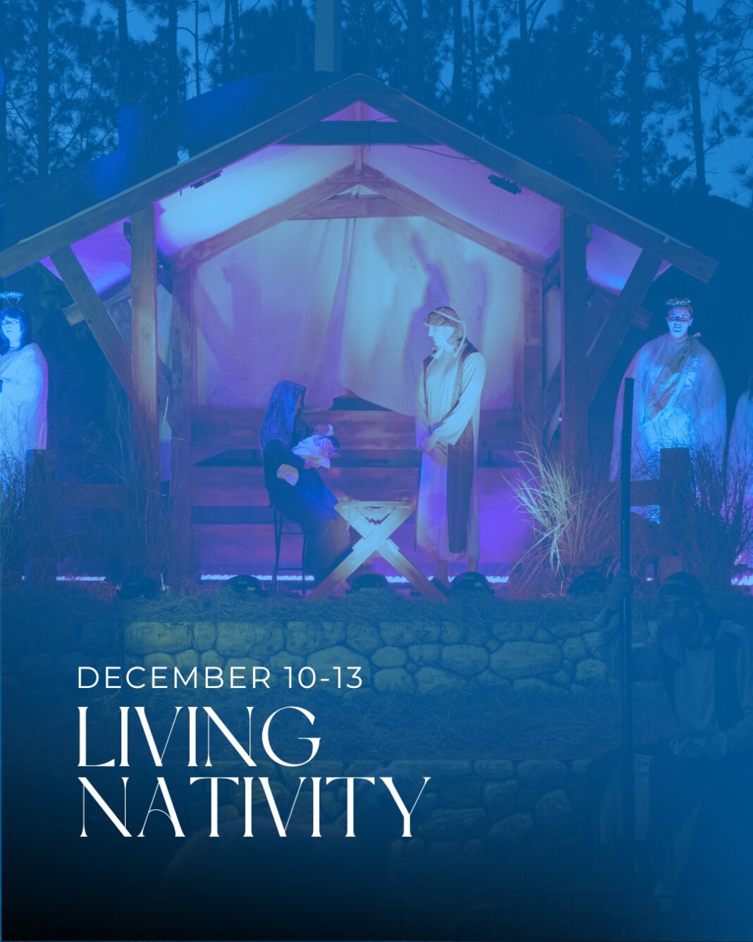 During the Palm Coast Living Nativity, weekend services at Parkview Church will take place on Sunday, December 14, at 9:00 a.m., 11:00 a.m. and 1:00 p.m. There will be no church services on Saturday, December 13.