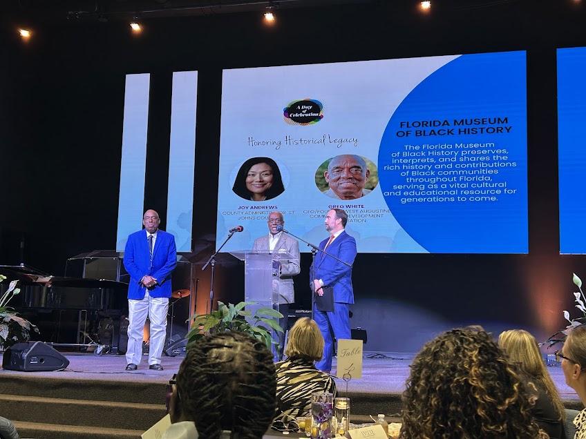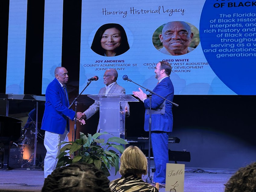 Another deeply moving tribute was paid to Greg White, affectionately known as the “Mayor of West Augustine,” for his unwavering dedication to improving his community. St. Johns County Commissioner Christian Whitehurst delivered an emotional tribute to White, highlighting his exceptional contributions to the growth and development of West Augustine. Whitehurst shared that the many positive changes seen in the community today—such as the newly opened health clinic named after White—can be traced back to his tireless work and advocacy.