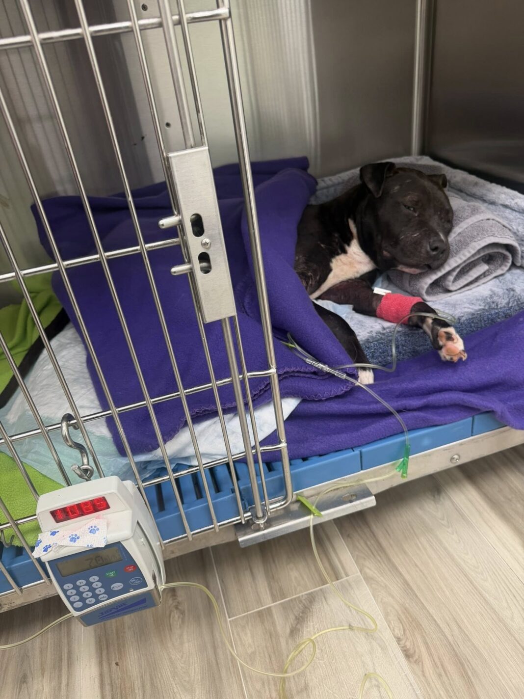 Shelly was rushed to East Coast Animal Hospital, where veterinary staff quickly realized her condition was far more severe than initially believed. She had multiple wounds across her body, including deep, contaminated injuries and significant swelling. The nature and pattern of the wounds raised concerns consistent with trauma sometimes seen in suspected dog-fighting cases, though authorities continue to investigate.
